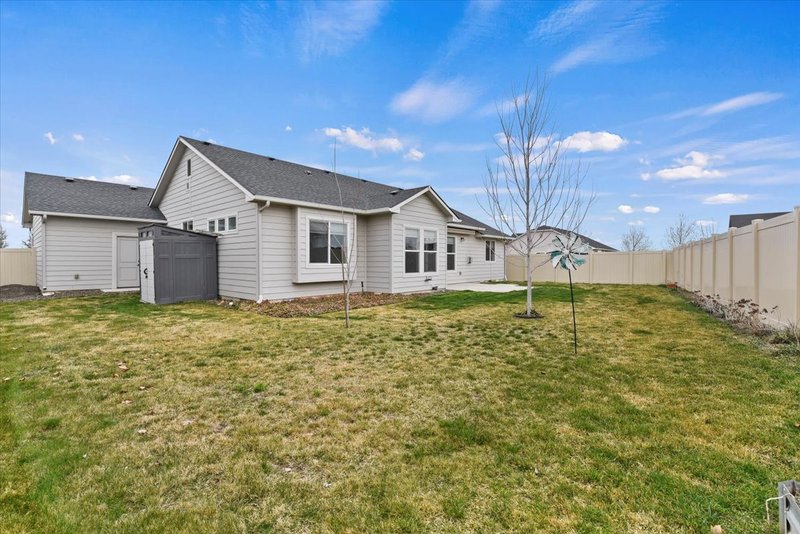 Offered at $429,900Great Location! Welcome home to this charming and well-maintained 4-bedroom, 2-bath residence offering 1,600 square feet of comfortable living space. The inviting living room features a cozy fireplace—perfect for relaxing evenings or gathering with family and friends. Step outside to a delightful backyard retreat complete with a Sunsetter awning, providing the ideal shaded space for outdoor dining or quiet mornings. Garden lovers will appreciate the abundance of strawberries, adding both beauty and a sweet seasonal treat. The fully fenced yard with durable vinyl fencing offers privacy and low maintenance. Includes raised garden bed and storage shed. A spacious 3-car garage provides plenty of room for vehicles, storage, or hobbies. This home blends comfort, functionality, and outdoor enjoyment—don’t miss the opportunity to make it yours!